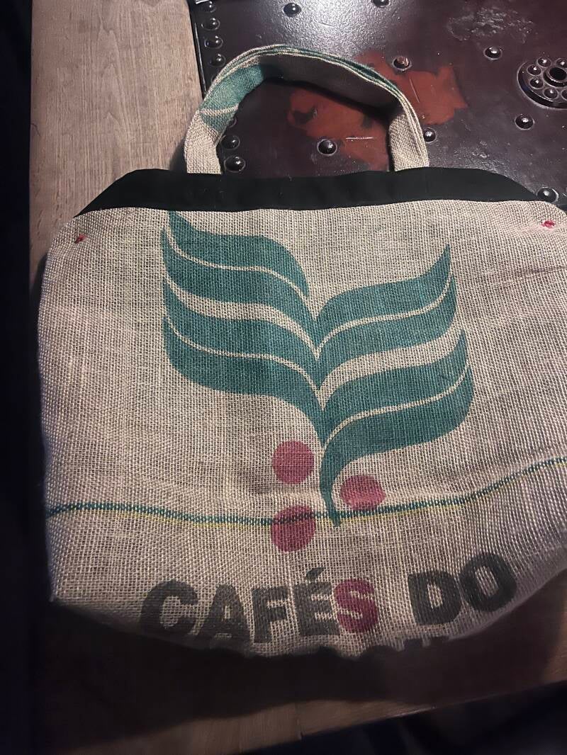 Upcycled koffietas gemaakt van gebruikt koffiezak.